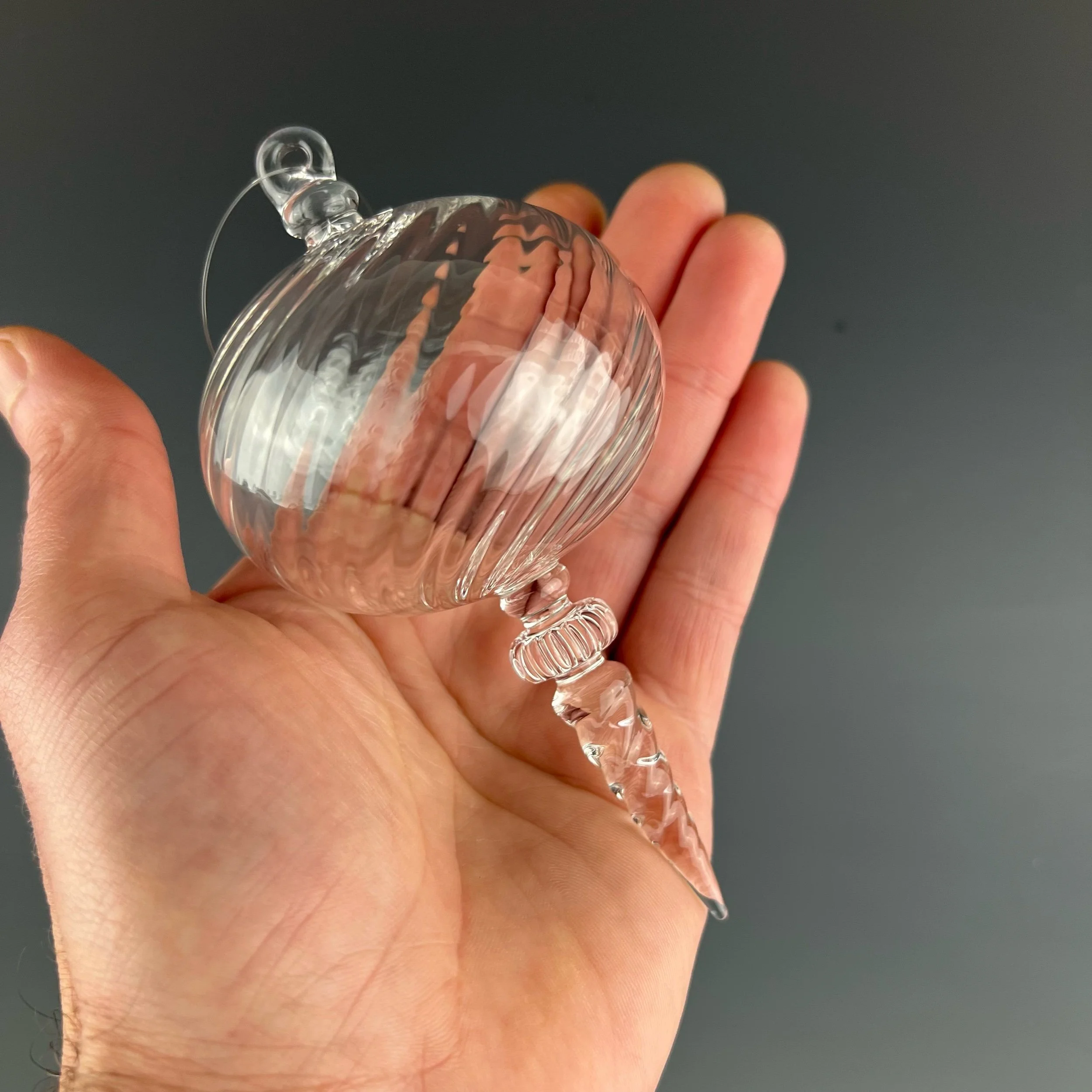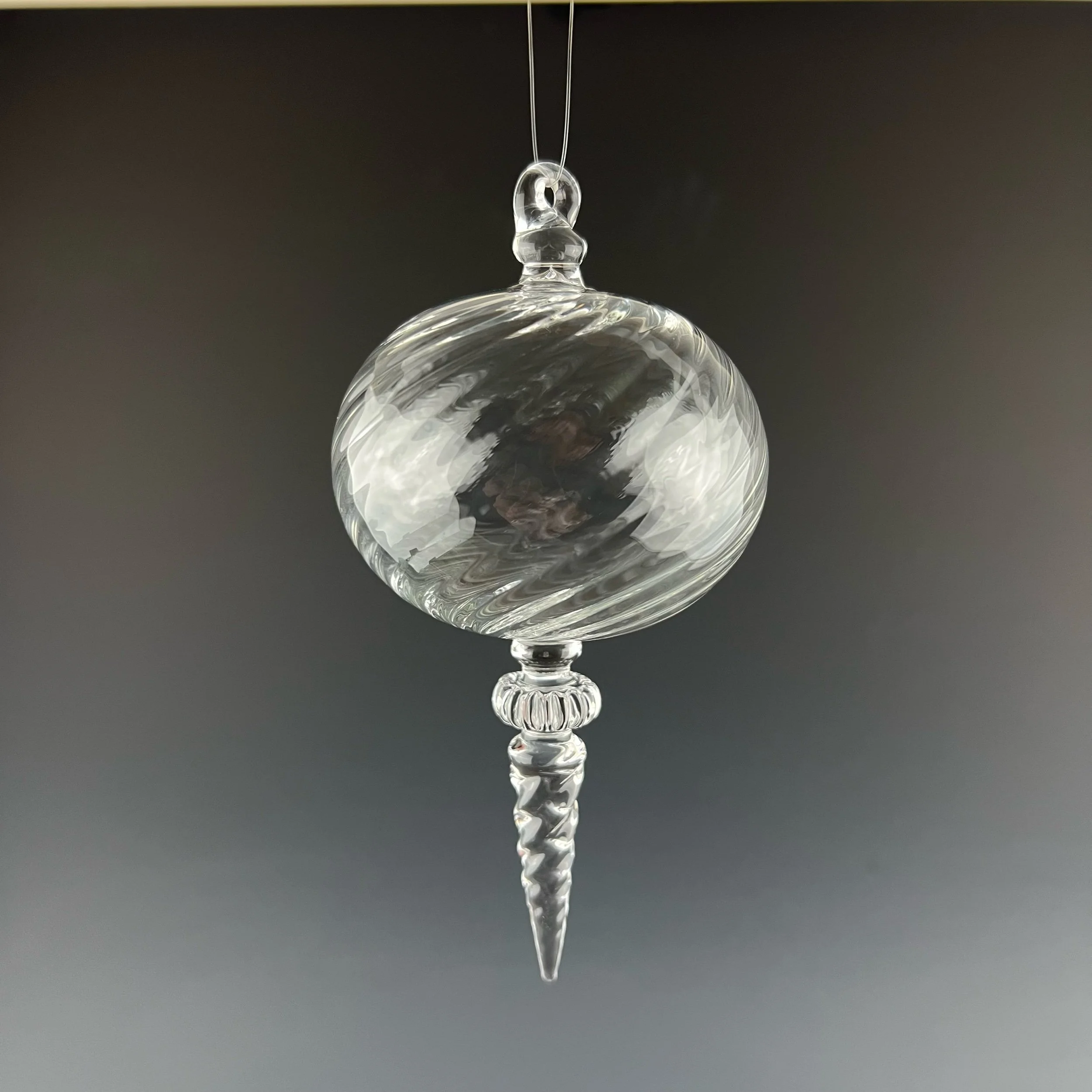 A nice hanging ornament in all clear glass with optics that really dance in the light.